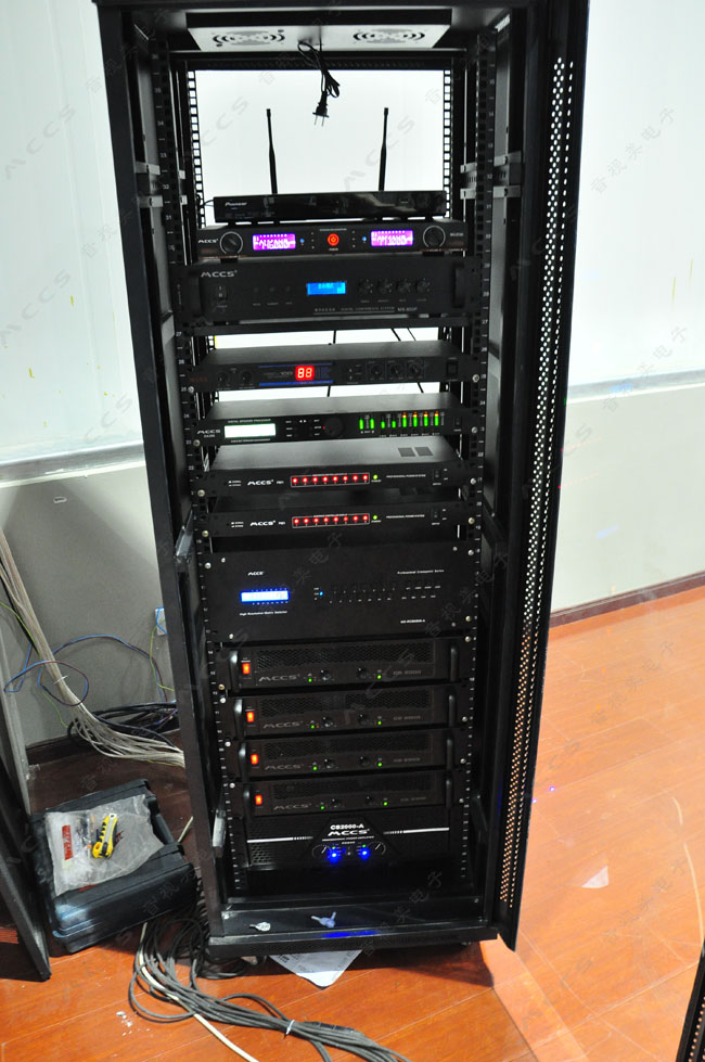 該項目使用了MCCS(音視美)多個設(shè)備。包括:無線觸摸屏控制界面、多媒體中央控制系統(tǒng)、功放、音響、均衡器、調(diào)音臺等音響擴聲設(shè)備。