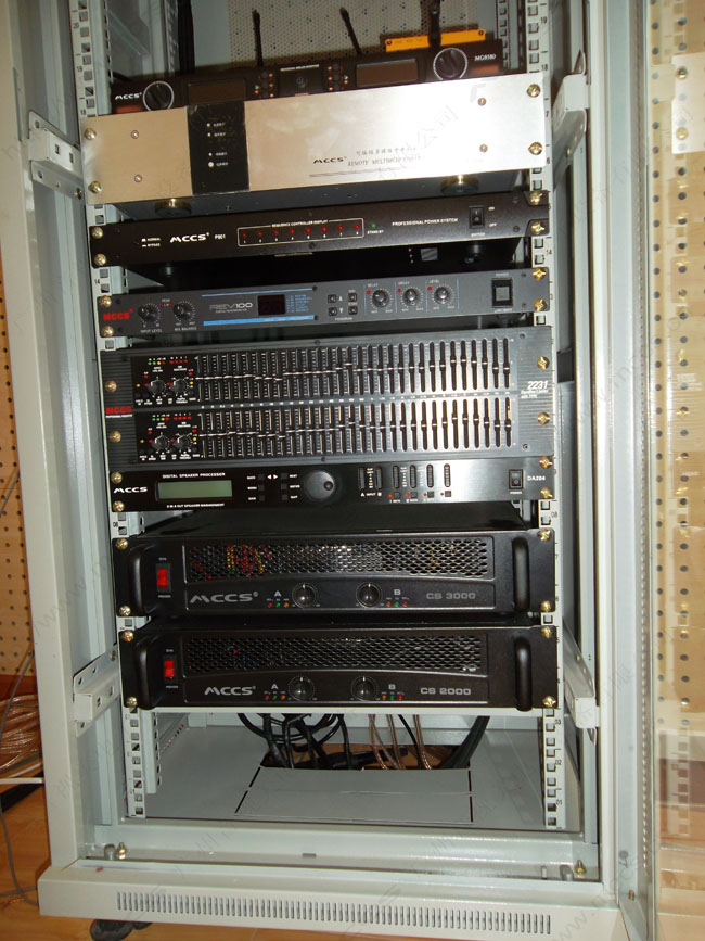 該項目使用了MCCS(音視美)多個設(shè)備。包括:無線觸摸屏控制界面、多媒體中央控制系統(tǒng)、功放、音響、均衡器、調(diào)音臺等音響擴聲設(shè)備。