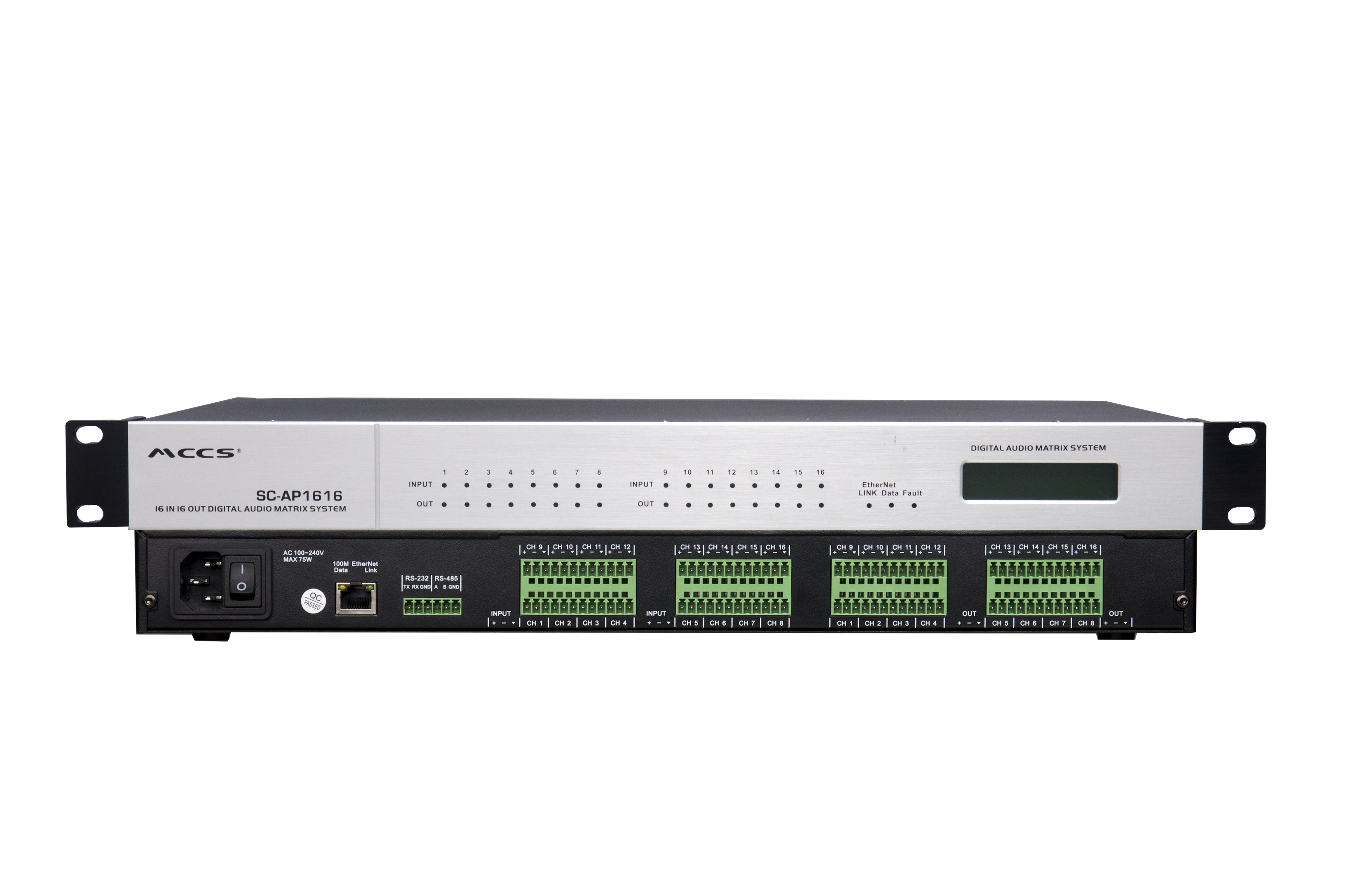 本數(shù)字音頻處理器是一臺(tái)通用型可編程數(shù)字音頻處理器,最大支持 16 MIC/ Line 輸入,支持48V幻象供電,16個(gè)平衡線路輸出。DSP具有強(qiáng)大的處理能力,每個(gè)輸入通道均有反饋抑制器、噪聲門、高通濾波、低通濾波、1s延時(shí)器、壓限器、16 段均衡(PEQ/Hi ghShelf / LowShelf)、每個(gè)輸出通道具有高通濾波、低通濾波、16 段均衡(PEQ/Hi ghShelf/ LowShelf)、壓限器、延時(shí)器。整機(jī)全矩陣混音。內(nèi)置正弦波、粉紅噪聲、白噪聲信號(hào)發(fā)生器。可存儲(chǔ) 32 個(gè)場景預(yù)設(shè),可自定義標(biāo)簽,前面板 LCD顯示屏顯示 IP 地址、當(dāng)前預(yù)設(shè)狀態(tài)、當(dāng)前運(yùn)行時(shí)間,1個(gè)TCP/ IP 通訊端口,1 個(gè)RS-232通訊端口,1個(gè)RS-485 通訊端口,開放第三方控制協(xié)議。